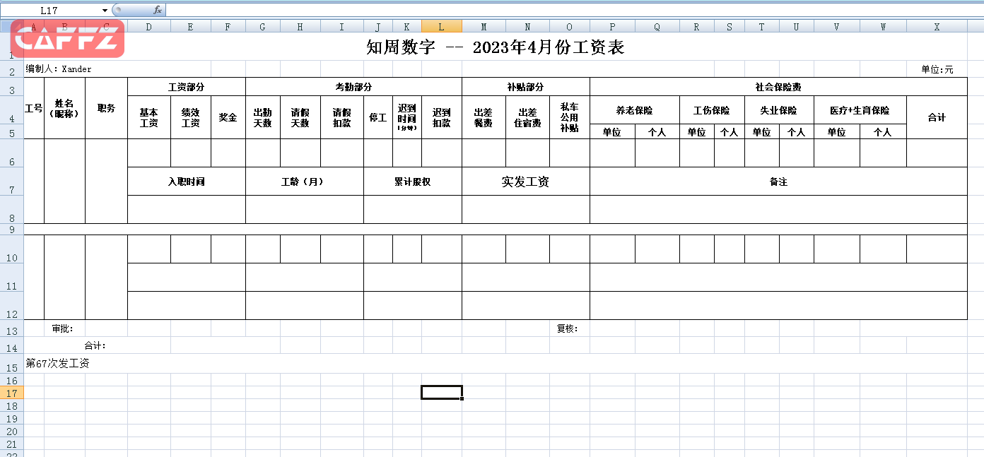 小微科技公司工资表样板-知周数字v5.0.xls