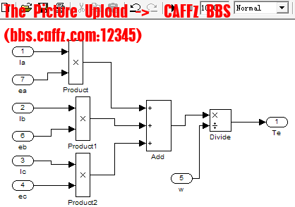 根据BLDC数学模型中的电磁转矩方程式,可以建立图5-10所示的转矩计算模块,模块输入为三相相电流与三相反电动势,通过加、乘模块即可求得电磁转矩信号Te