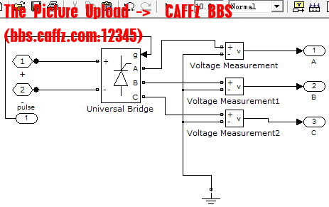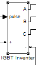 逆变器对BLDC来说,首先是功率变换装置,也就是电子换向器,每一个桥臂上的一个功率器件相当于直流电动机的一个机械换向器,还同时兼有PWM电流调节器功能。对逆变器的建模,本文采用SimulinkSimPowerSystem工具箱提供的三相全桥IGBT模块。给IGBTABC三相加三个电压表,输出的Simulink信号可以与BLDC直接连接,如图5-12所示。逆变器根据电流控制模块所控制PWM信号,顺序导通和关断,产生方波电流输出。