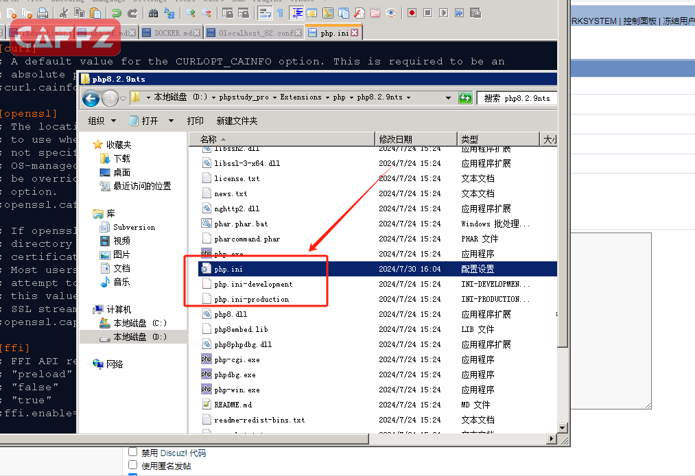 关于在phpstudy集成面板安装php8.2出现php。ini 空白的解决办法