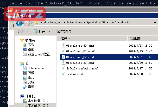 在apache的目录下如图,可以找到vhost,虚拟机的配置文件,在这些文件,我们可以配置多个不同的web服务器